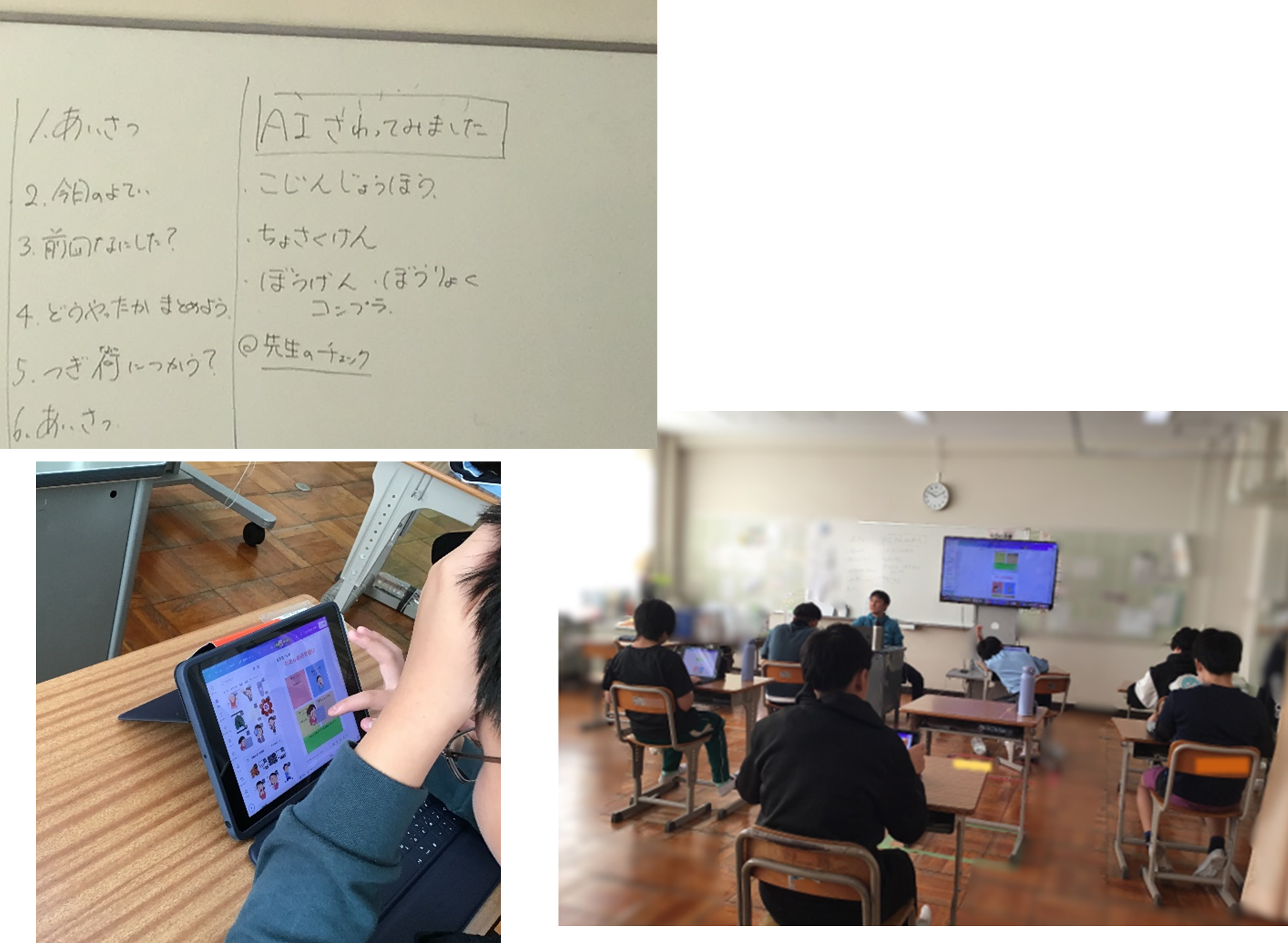 活動後には、「やってみてどうだったか」「もっとこうなったらいいな」といった振り返りを行い、さらに「できそうなこと」を見つけて、再度生成AIに追加のプロンプトを支持入力して試してみるなど、それぞれが自身の満足が高まる学びができました。