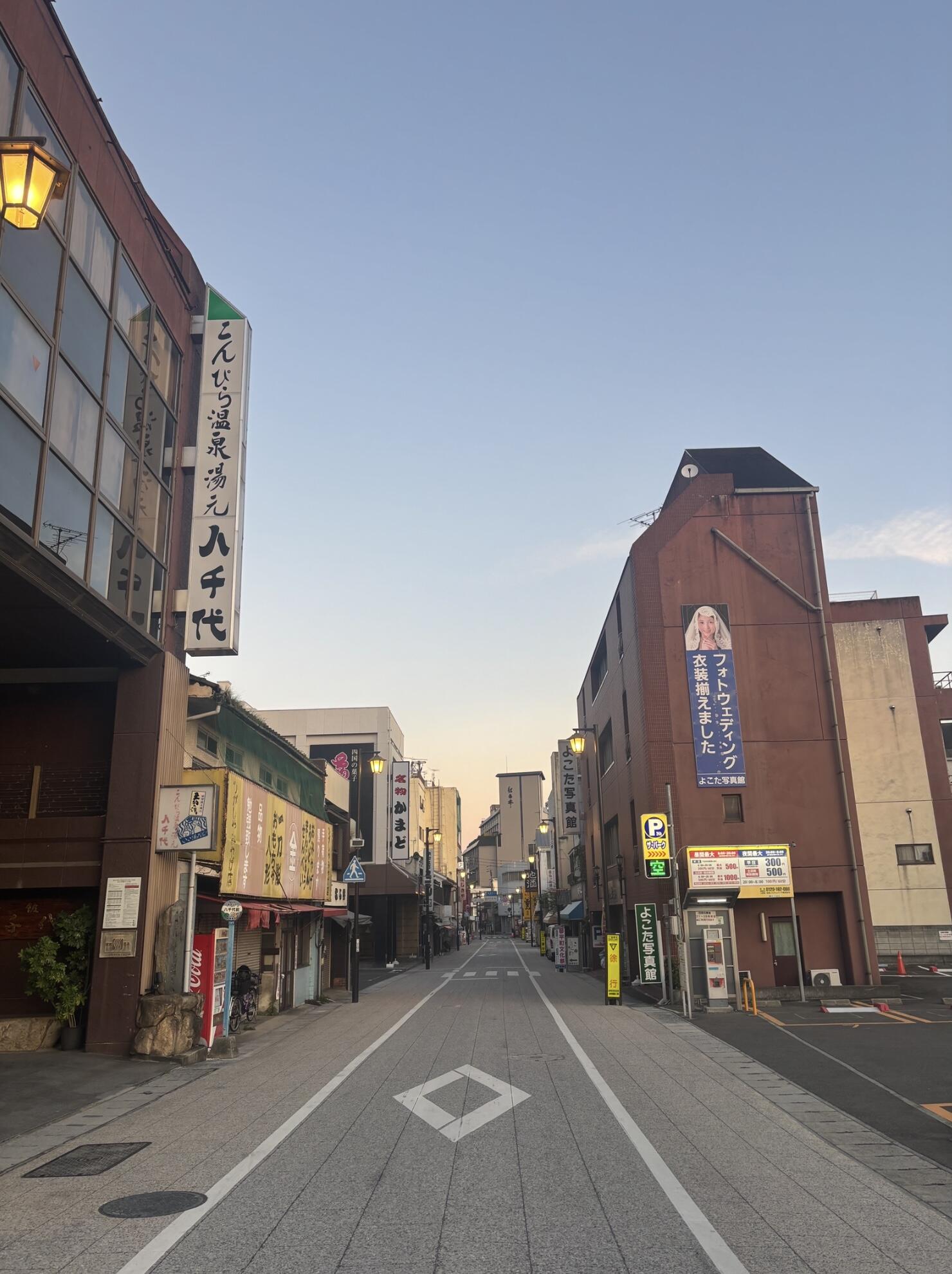 こちら、中学部3年生です。ただ今、朝食を終えレオマワールドへの出発準備中です。雲ひとつない、ピンと張りつめた空気の、こんぴらさんの朝を迎えております。