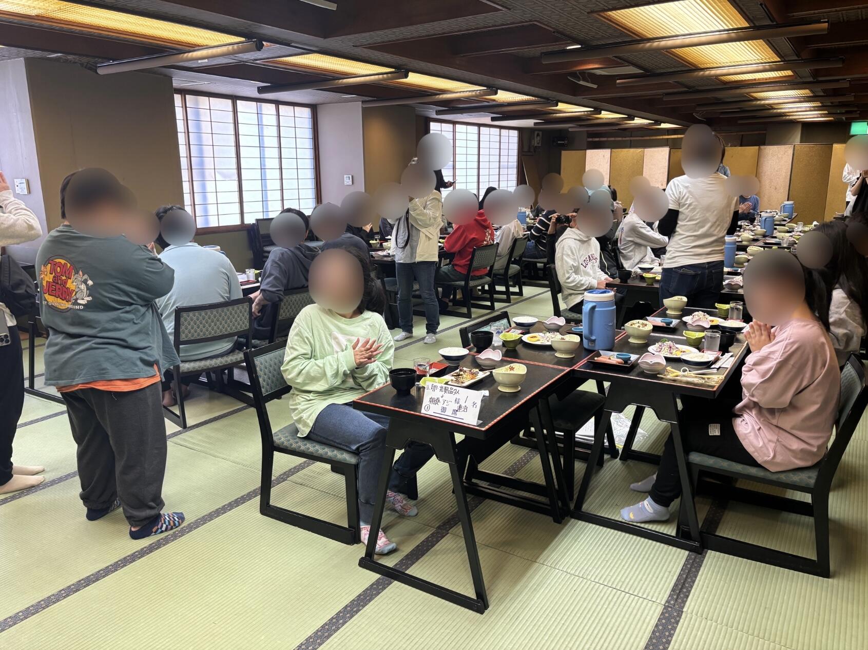 さて朝食ですが、「いただきます」の挨拶の後、5分後には「おかわりー!」とおかわりする子、「今日はUNO負けへんで〜」と昨晩の楽しい思い出を話す子、お気に入りのヘアバンドをつけて登場する子、笑顔と笑い声に包まれた幸せな、全員そろっての朝食でした。
