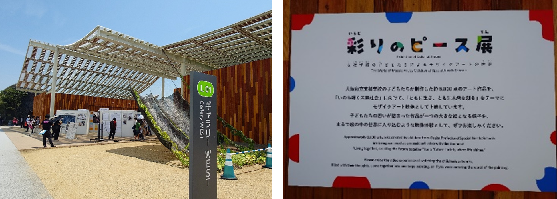 ご報告が遅れてしまいましたが、7月30日(水)に大阪・関西万博ギャラリーWESTにて「彩のピース展~支援学校の子どもたちによるモザイクアートの世界~」が開催され、本校の代表教員が展示を鑑賞してきました。