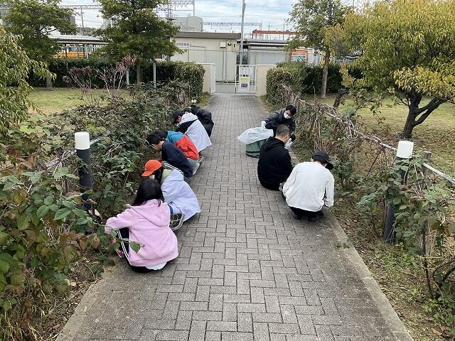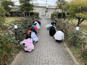11月12日(水)の高等部職業の時間に、農業2班の1年生7人がどうみょうじ高殿苑へ農作業実習に行きました。ブラックベリーの植栽に生えている雑草を抜いたり、剪定したオリーブの枝葉を集めたりして、畑の整備をしました。長いオリーブの枝を剪定ばさみで短くしながら袋に詰めるなど、工夫をしながら作業を進めました。作業がとても楽しかったようで、普段は集中が途切れやすい生徒も、最後まで全力で取り組む姿が見られました。