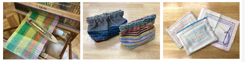 高等部・縫製1班 さをり織りやランニングステッチの布を使った製品づくりに励んでいます。