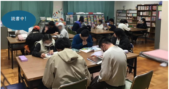 生徒はたくさんある書籍の中から、自分の興味のある書籍を探し、テーブルについて静寂な環境で読書を楽しんでいました。