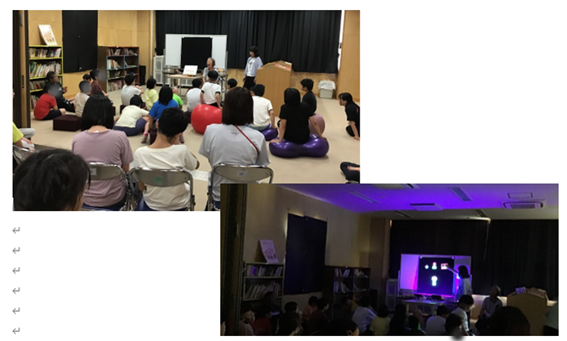 今回は、「なぞなぞの好きな女の子」(スケッチブックシアター)「おばけなんてないさ」(ブラックシアター)「とんでもない」(絵本)でした。部屋いっぱいに集まった児童が、絵本を食い入るように見ている姿を前方から見ると圧巻でした。本当に子どもたちはおはなしが大好きです。