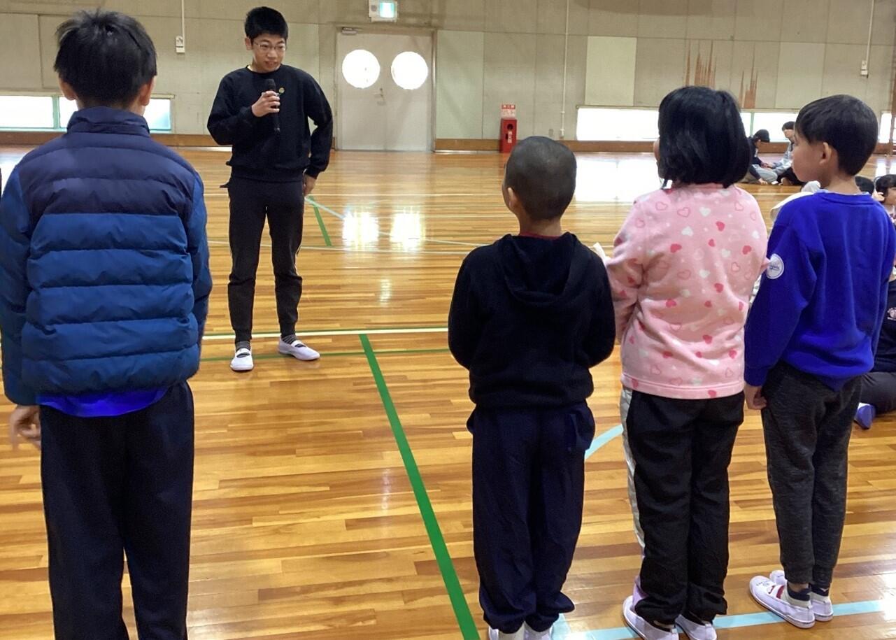 写真(しゃしん)は当選(とうせん)した4人(にん)が児童会(じどうかい)役員(やくいん)経験者(けいけんしゃ)の6年生(ねんせい)からアドバイスや応援(おうえん)の言葉(ことば)をかけてもらっている様子(ようす)です。