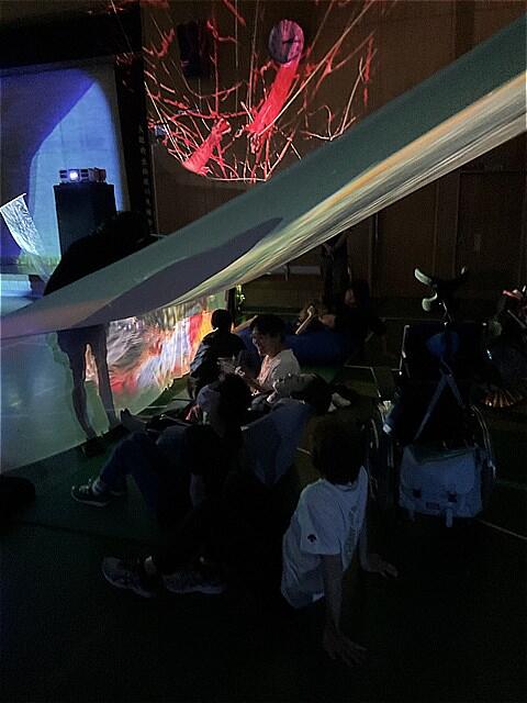 児童生徒の目がかがやき、顔を上げ、その幻想的な空間にすいこまれていきました。