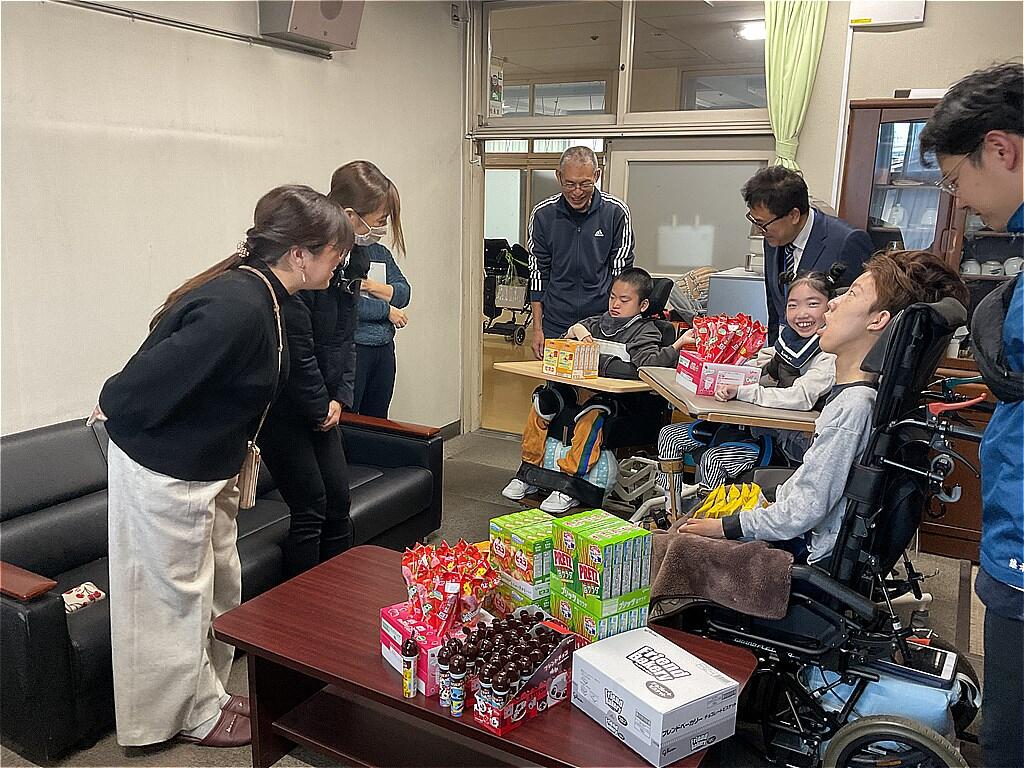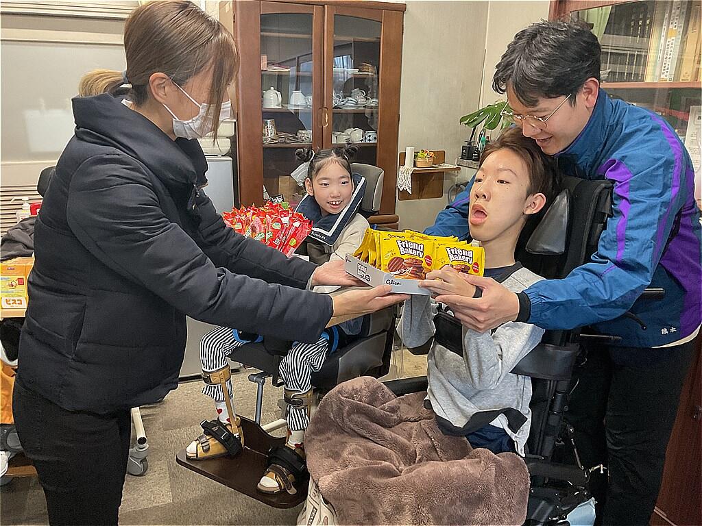 グリコさんの従業員の方のご厚意より毎年この時期にたくさんのお菓子を児童生徒にいただいています。実はみんな毎年とても楽しみにしています。