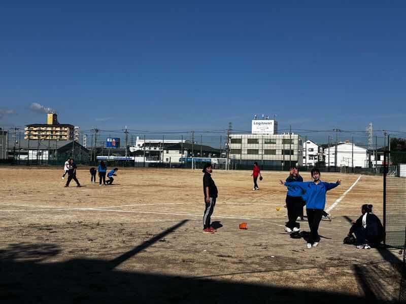 グランドではソフトボールの授業があり、生徒に交じって先生も頑張っていました。