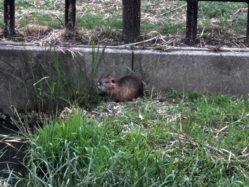 ウサギかネズミかと思いましたが、ちょっと大きすぎると思って学校に戻って調べてみまると、どうやらヌートリアだったようです。