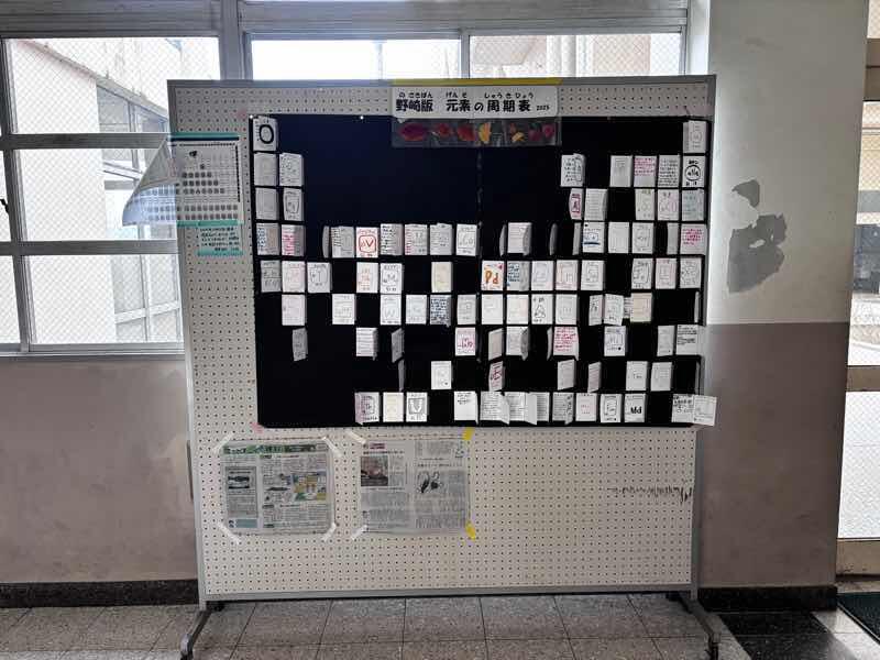 まだ作成途中のようですが、それぞれの元素について生徒のみなさんが調べた説明文が書かれていました。昔習った元素の記憶は殆ど残っていませんが、一つ一つ見てみるとあらためて「へぇ~そうなんだ。」と思うこともありました。