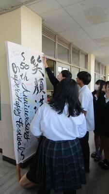 文化祭の看板に生徒のメッセージも加わり、とても素敵に仕上がりました(*^-^*)!!♡