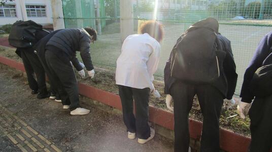 緑化の日に備えて、草花を抜いたり、土に肥料を混ぜたりしました♪