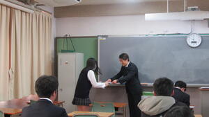 その後、2年生の教室では学年表彰が行われ、名前を呼ばれた生徒たちは、嬉しそうに校長先生から表彰状を受け取っていました。