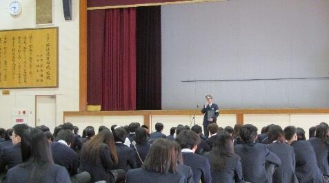 校長先生と生活支援部の先生からお話がありました。今回は、警察の方にも来ていただき、4月1日から始まった自転車の新しい制度について説明していただきました🚲
