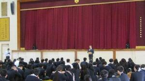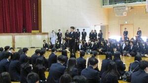 離任式では、他校へ赴任された先生方から心温まるメッセージをいただき、生徒たちは真剣に耳を傾けていました。