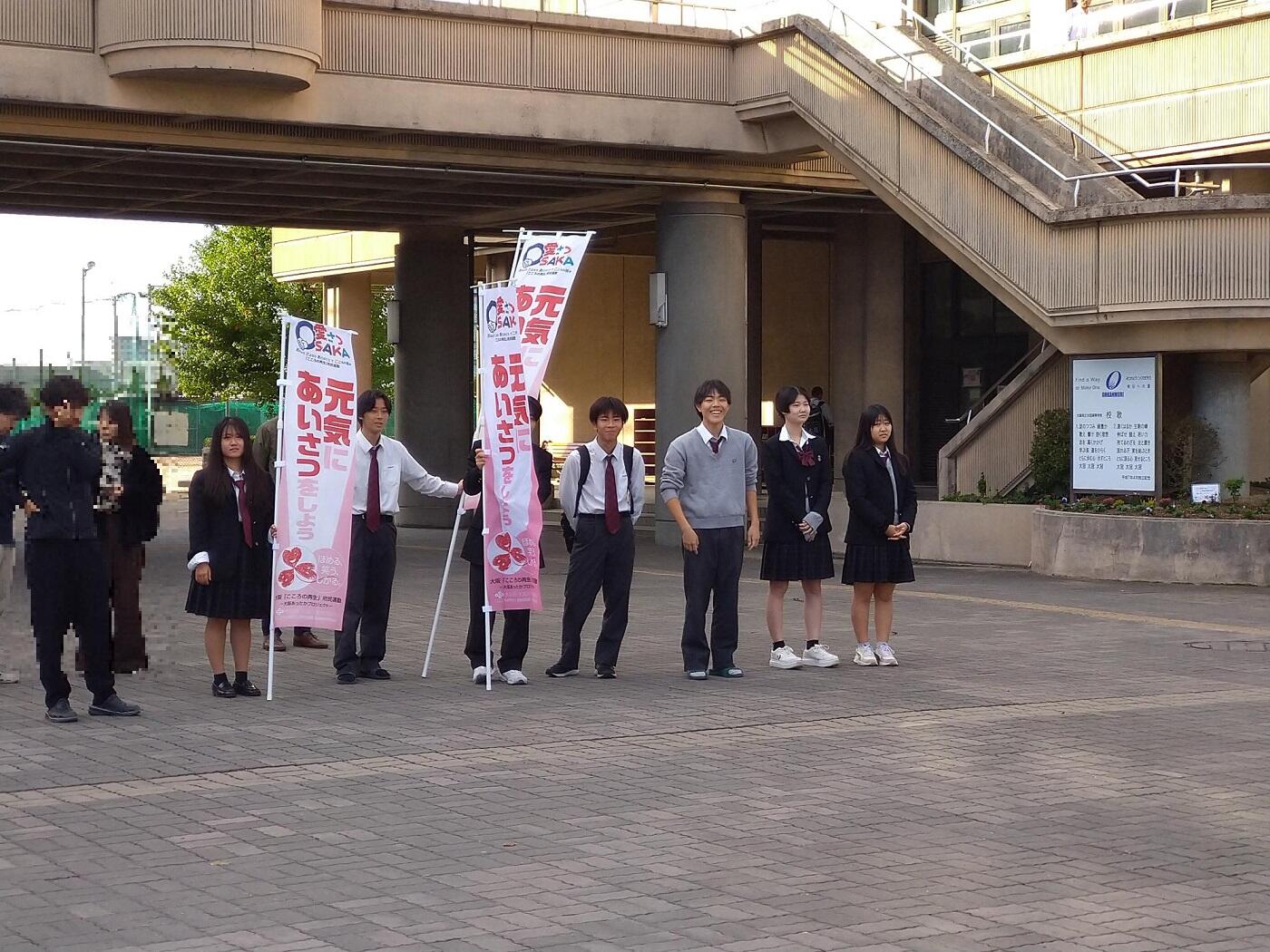 昨日認証式を終えた後期生徒会が活動を始めました。 まず最初の取組は、朝のあいさつ運動に。平成18年に始まった大阪「こころの再生」府民運動に、本校は、後期生徒会役員が立ち上がるこの時期に、例年行ってきました。