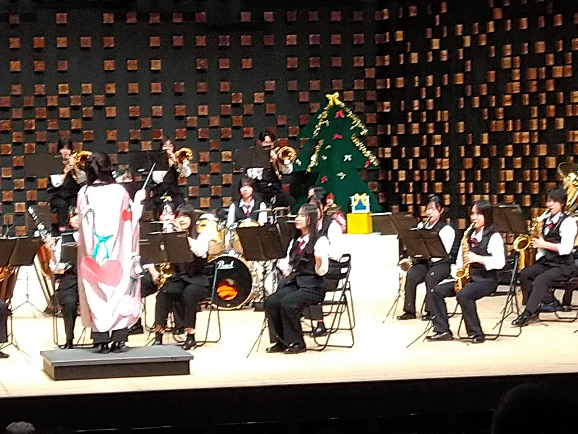 各校の演奏の後は、4校合同、総勢160名以上の部員達による演奏を、そして、最後は、『ダンシングヒーロー』、サンタやトナカイに扮した生徒もステージに、そして、客席に降り立ち、演奏に合わせて、ダンスを披露してくれました。