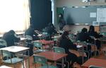 今回は基礎科目のマークシート方式。高校入学からの9か月間で学んできたことの定着度を確認しようと、皆、真剣な表情で取り組んでいました。