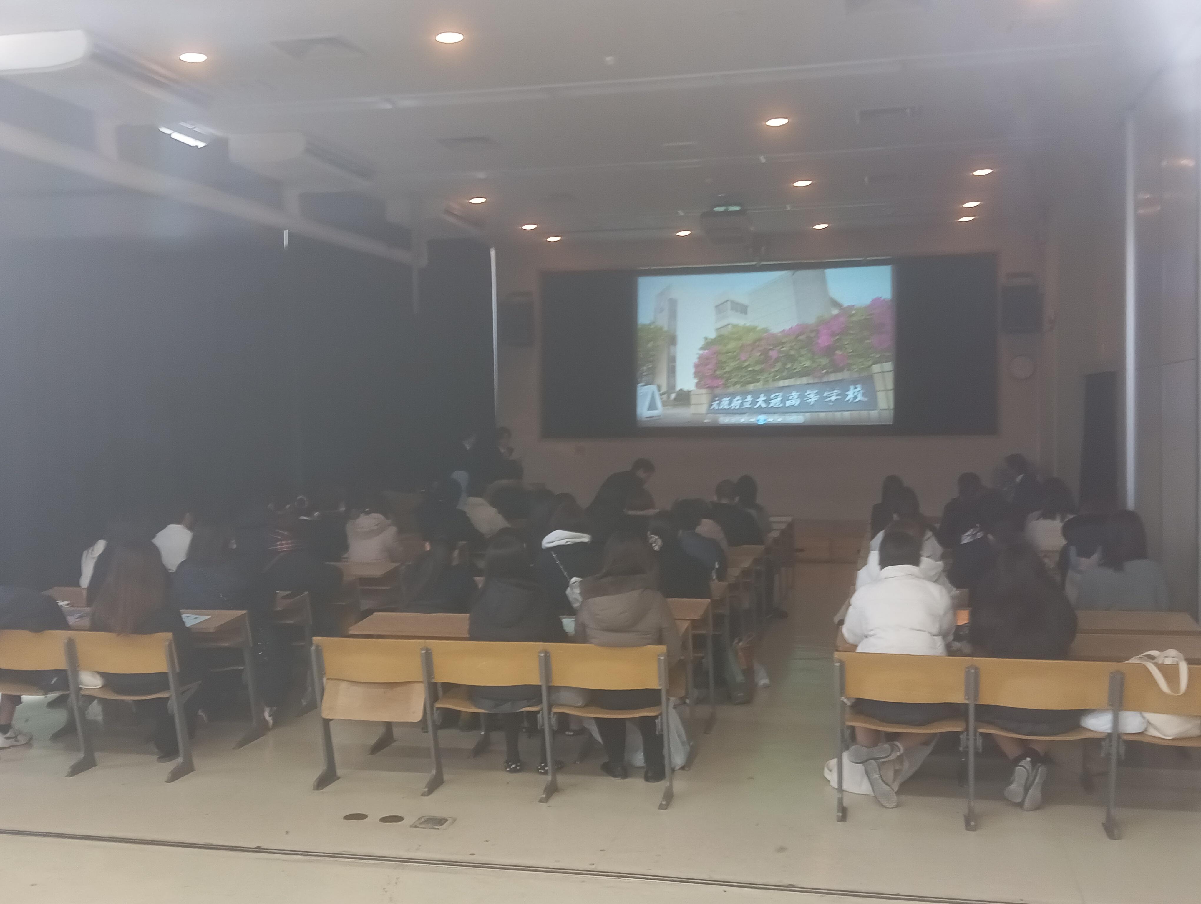 説明会の開始前には、行事(体育祭・文化祭・修学旅行等)の動画で高校生活の躍動感を感じていただき、その後の全体説明では、スライドを用いて本校の特色をお伝えしました。