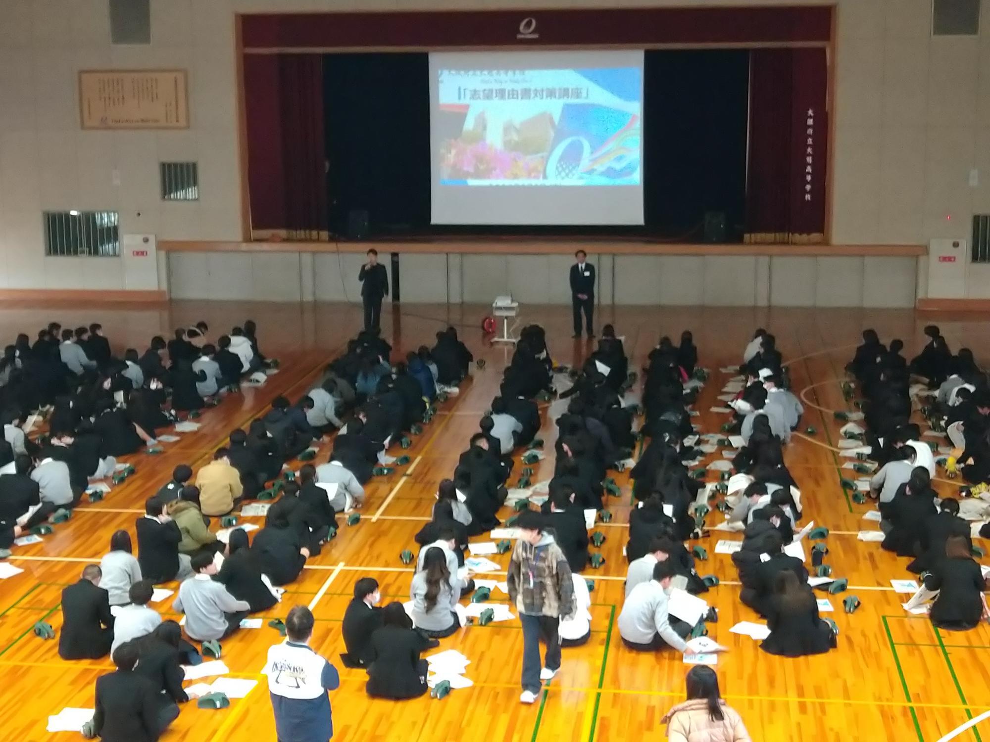 続く6限目には、志望理由書の書き方についての講演会を行いました。 昨今の入試では、総合型選抜や学校推薦型選抜の枠が広がっており、3年生が今まさに奮闘している一般選抜だけでなく、早い時期から挑戦を始める生徒が増えています。こうした選抜では志望理由書やプレゼンテーションが合否の鍵を握るため、いかに「深みのある内容」を書き上げるかが重要です。講演では、合格に近づくために「今、何をすべきか」という具体的なアドバイスがあり、生徒たちは普段以上に真剣な眼差しでメモを取っていました。