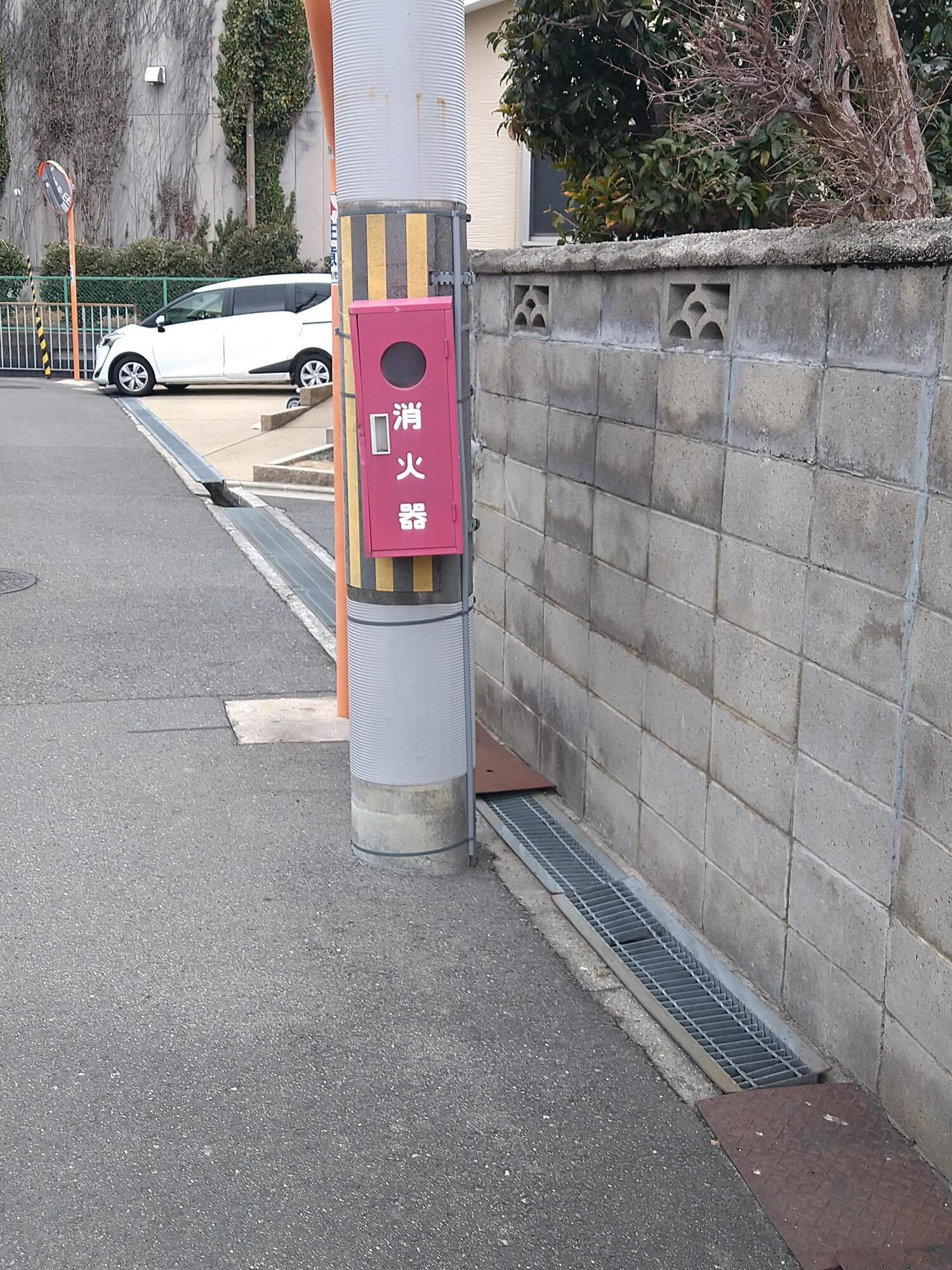 消火器や消火栓の設置場所、災害時の一時集合場所、避難場所の標識、河川増水時の注意表示など、日頃は見落としがちな案内が、各所に設置されていることを改めて確認できました。限られた時間の中で対象をくまなく調査し、なかなか苦労していましたが、各ポイントを見つけては、写真を撮影して学校に戻りました。