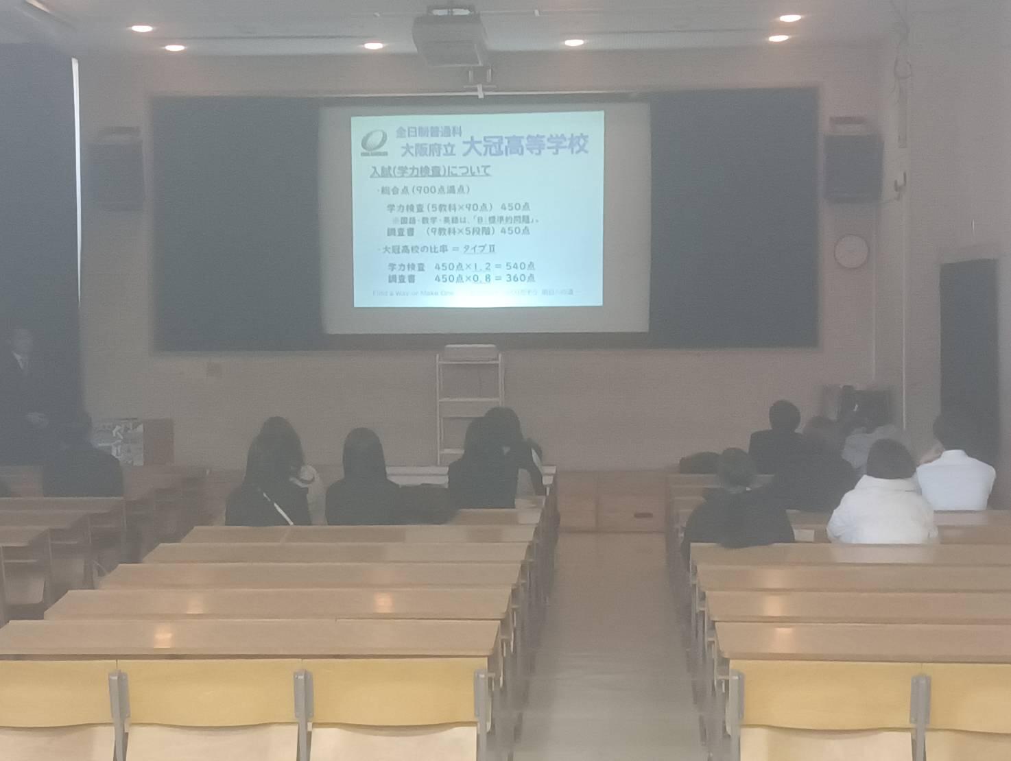 部活動の相談をしたり、「中学2年生ですが、説明会があると聞いて参加しました」と話してくれたりと、それぞれが大冠高校への思いを持って足を運んでくれました。 この大冠への憧れを日々の学びに繋げ、ぜひ4月からこの学び舎で共に過ごせる権利を勝ち取ってください。