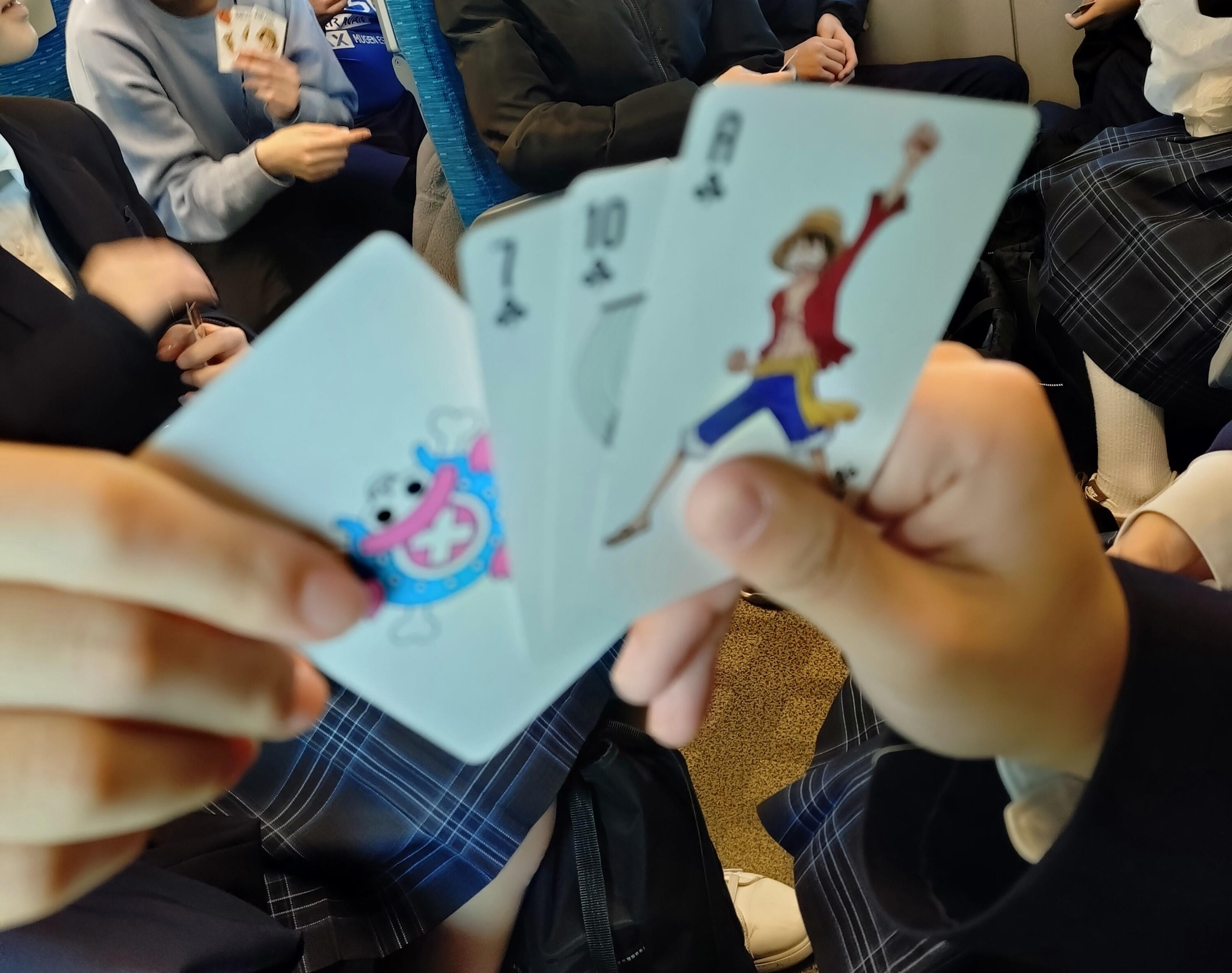 新幹線の中では、座席を向かい合わせにして、お話しやトランプをして過ごしました。