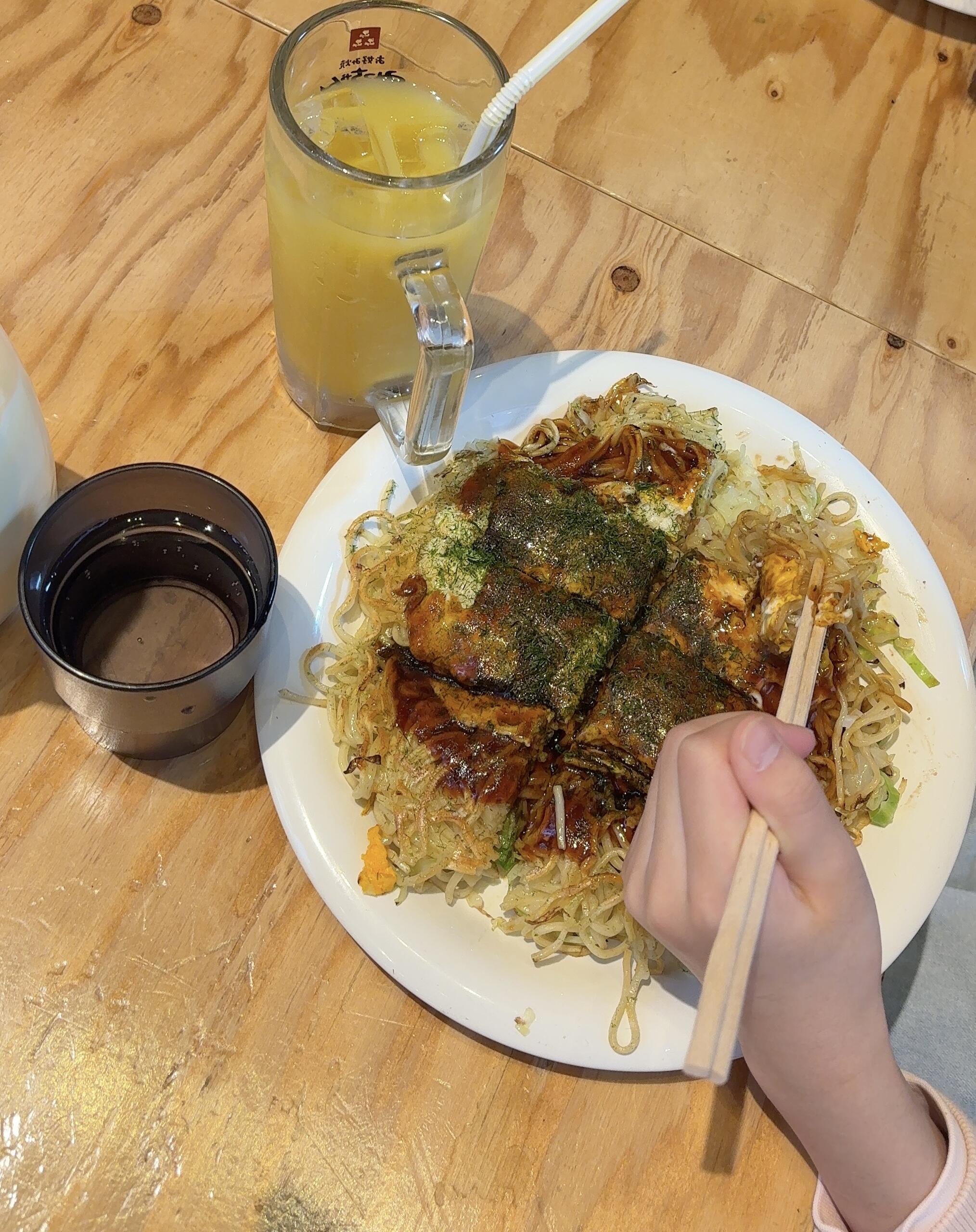 お昼ご飯に広島焼きを食べました。おいしくて、たくさんの量でしたが完食した子がいっぱいいました。