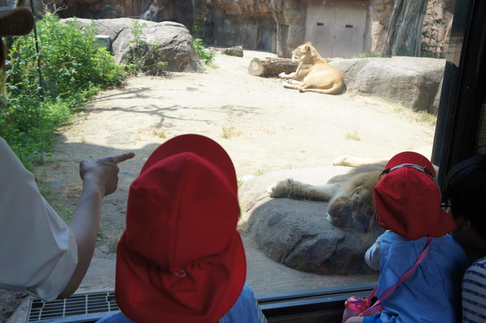 5月11日(木)は、天王寺動物園へ遠足に行ってきました。きれいな青空の下、元気いっぱい歩いてたくさんの動物を見ることができました。 子どもたちは目の前で動く動物に、「大きいね!!」「可愛い!!」と目を輝かせていました。 羊のえさやりでは、ちょっぴりドキドキしながらも手を差し出し、羊がえさを食べると、「わぁ、食べた♪」と大喜びでした。