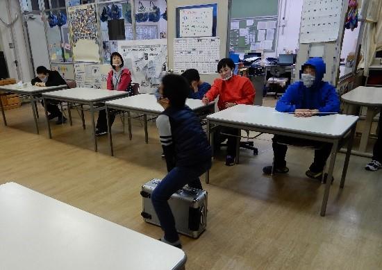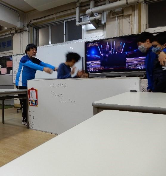 2020年も残すところ数週間になりました。寄宿舎ではお楽しみ会に向けての練習が始まっています。今年のお楽しみ会はパントマイムとマジックに挑戦します。参考動画を真剣に見た後、アドリブをふんだんに取り入れて楽しみながら行っていました。職員がマジックの見本を間近で見せると「やるやん!!」と職員に言っていました。