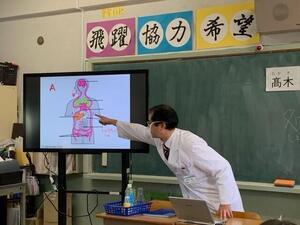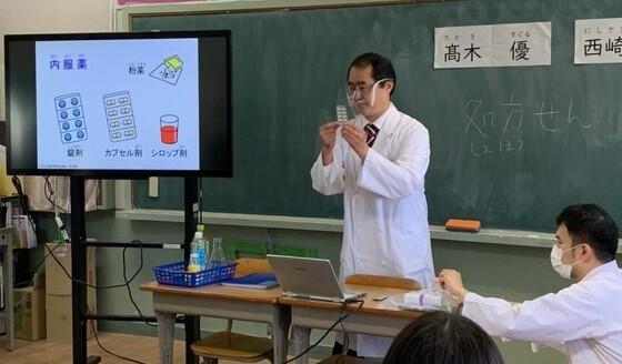 10月25日(火)、ろうの髙木優薬剤師と本校・学校薬剤師の西﨑大祐先生にお越しいただき、小学部6年生の児童を対象に「薬の正しい使い方講座」を行いました。当日は、スライドを使ったお話と、錠剤が腸で溶ける様子や、お薬をお茶やコーラで飲むとどうなるか等の実験をしていただきました。