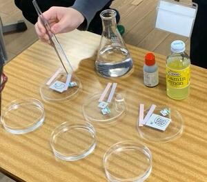 実験では、子どもたちも、後ろで見ていた担任も「おーっ!」と驚きの声をあげながら見学しました。まとめとして、薬を飲むときの5つの約束を確認しました。