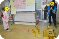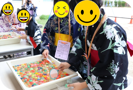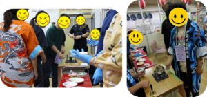 当日は舎生たちが浴衣や法被を着てテンションMAX。管理職の先生や学部の先生も一緒に参加しました。今年は2つのゲーム「輪投げ」と「スーパーボールすくい」のお店で競い合い、楽しい時間を過ごしました。2つのゲームを終えた舎生からミルクせんべい抽選に臨みます。ビンゴ抽選機で5番~10番の番号を当てると、当たった番号と同じ枚数のミルクせんべいを食べられます。舎生たちは一喜一憂しながらビンゴ抽選機を回し、ミルクせんべいを思う存分味わいました。