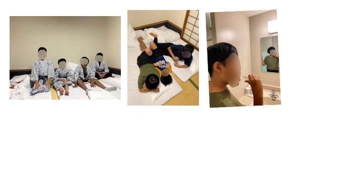 一日の最後は就寝準備です。 部屋に戻ると布団がすでに用意されており、生徒たちは歯磨きをしたり、身支度を整えたりして眠る準備をしました。あくびをしている生徒もいて、少しずつ眠気が訪れている様子でした。 部屋には浴衣が置かれていて、みんなで着替えて記念撮影をしました。旅の思い出に残るひとときとなりました。 そのあとは電気を消すと一日の活動でたっぷり体を動かしたこともあり、比較的早く眠りにつきまし...