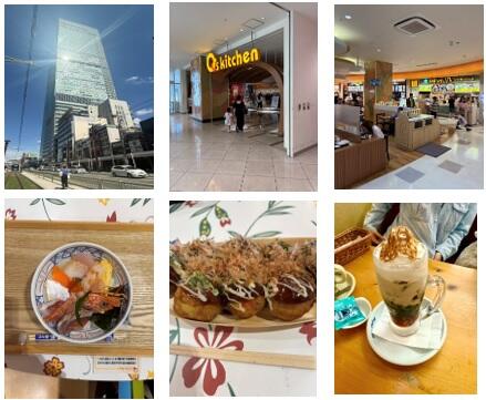 たこ焼き、ラーメン・半チャーハン、エビとじ丼+キャベツ、海鮮丼、フルーツたっぷりパンケーキ、味噌カツパン、マロン風味のコーヒーゼリーなどなど、たっぷり堪能しました!