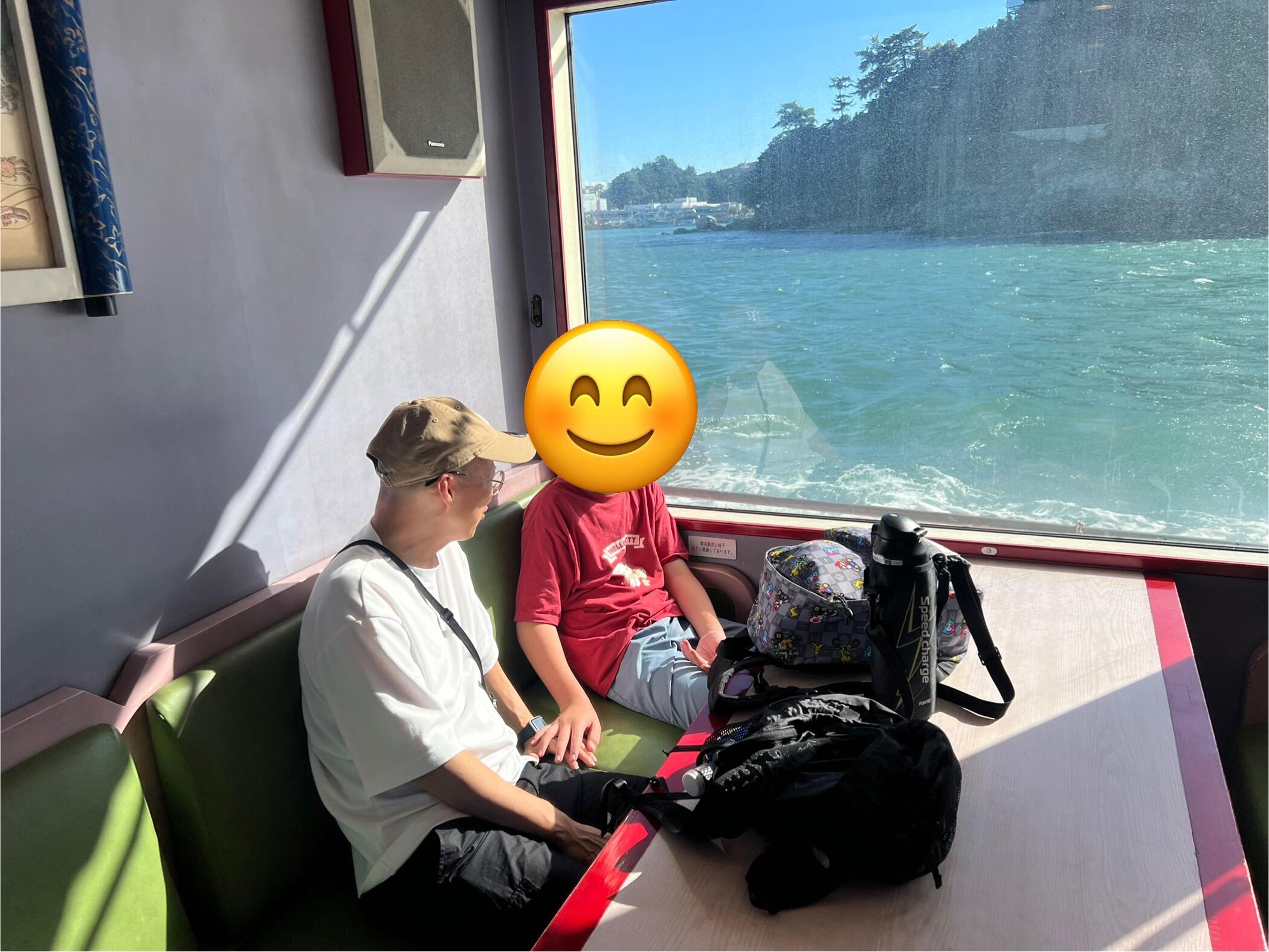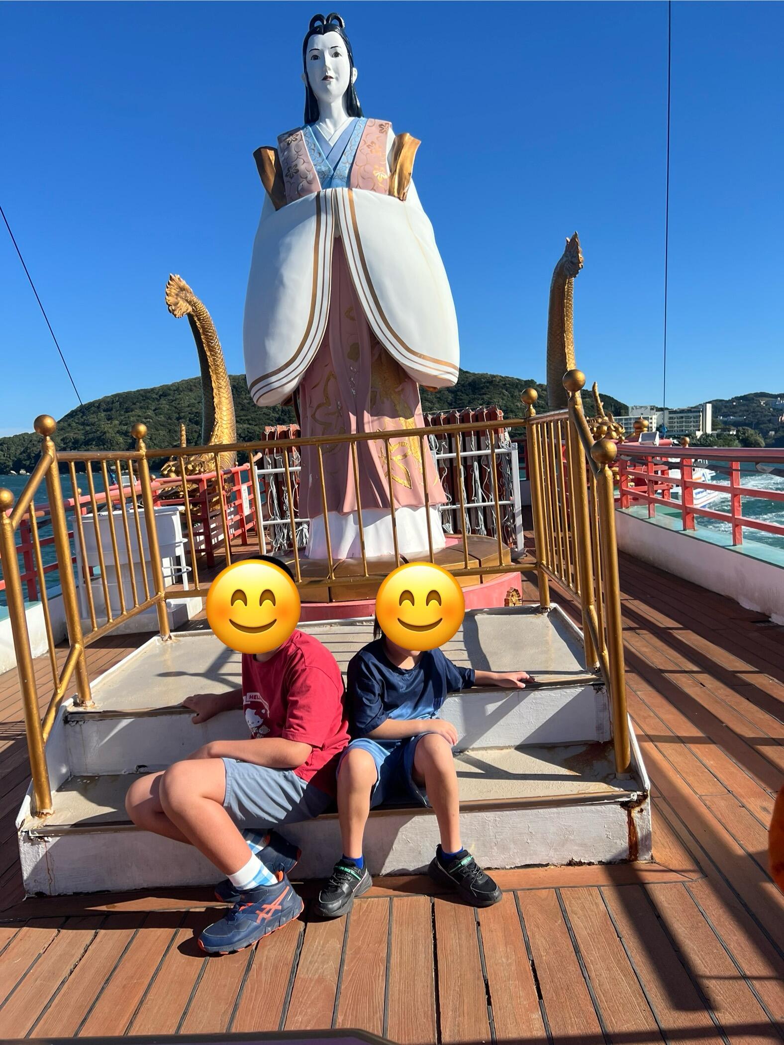 鳥羽湾めぐり。龍宮城という船に乗ったよ。風が少し強かったですが楽しめました。イルカの形に似てると言われているイルカ島に行きます。