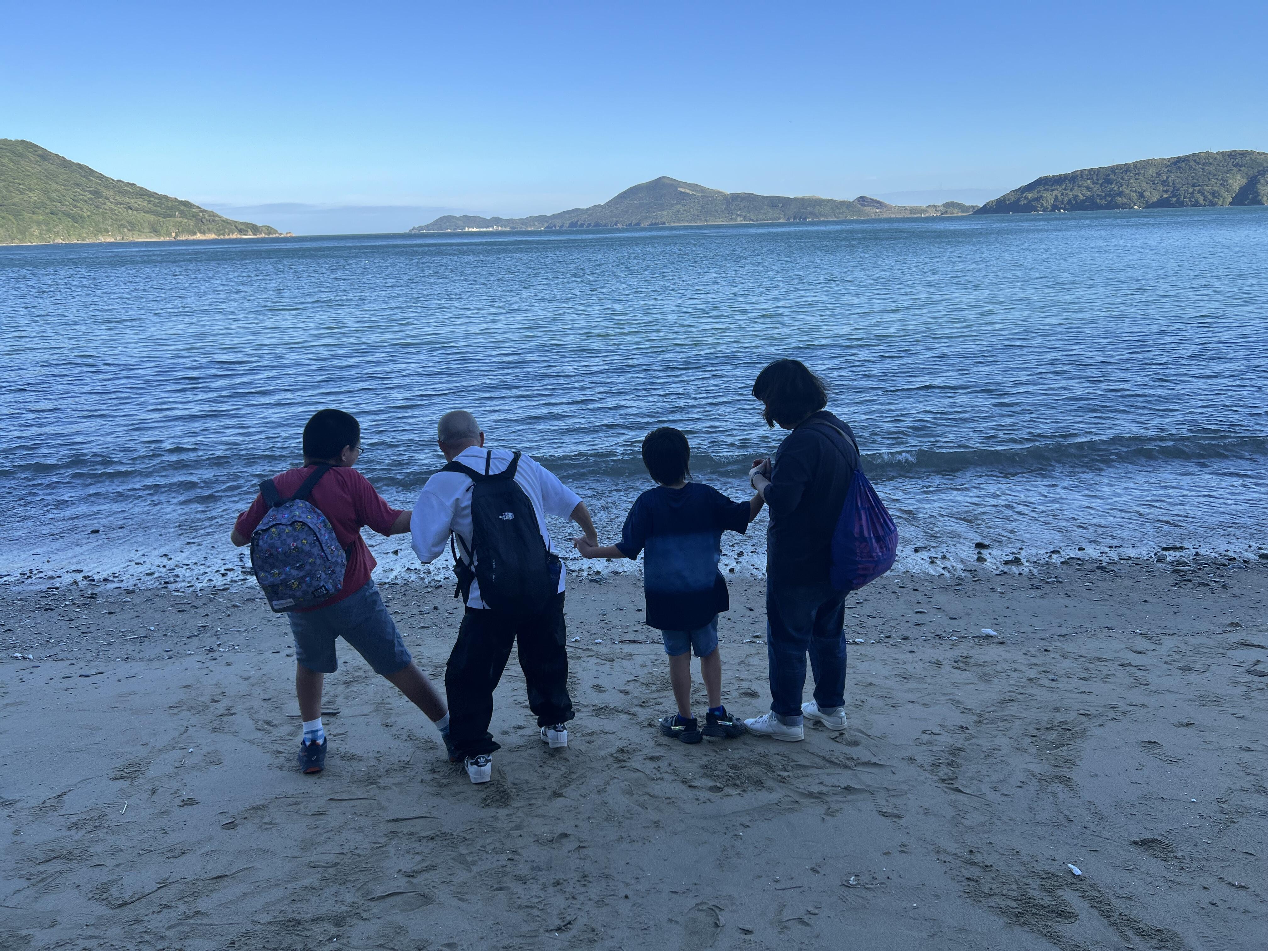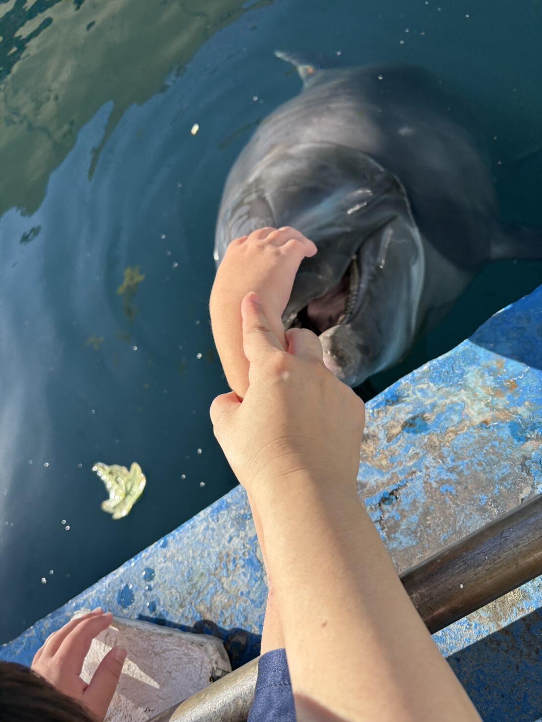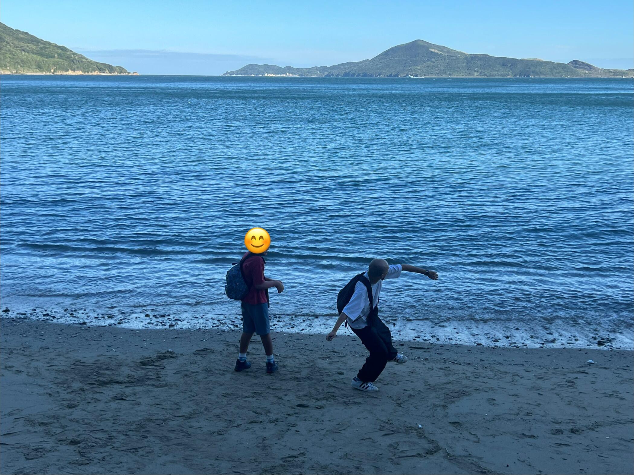 イルカ島で遊んだよ。イルカにも会えたし、海岸で石投げもしました。