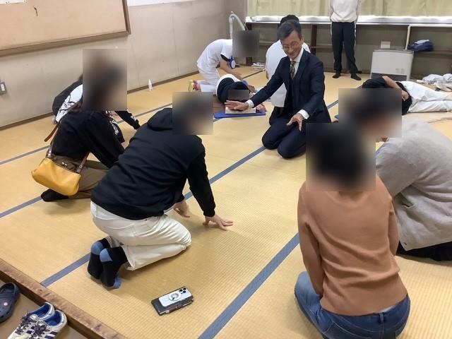 あん摩実技の見学では、親指を鍛える「母指立て」という訓練も実際に行っていただいたりしました。
