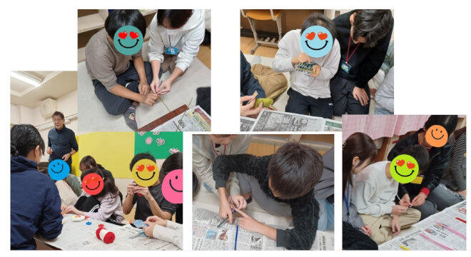 30分ほどの作業工程中、驚くほどみんな集中。阪大生さんとの共同作業で、たのしく作業が進みました。
