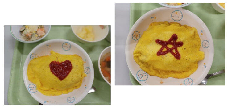 ニコニコ😊、ハート💛、星★のマークで彩られましたが、ケチャップが好きな人は、追いケチャップもしていました。