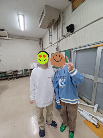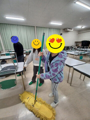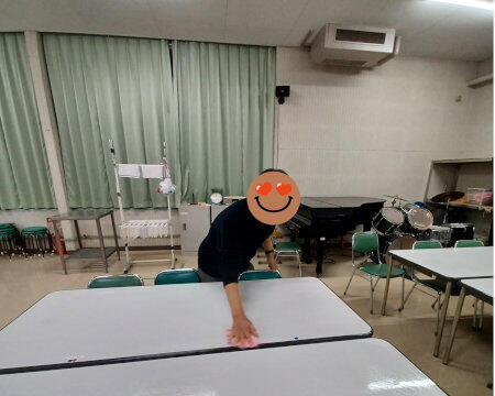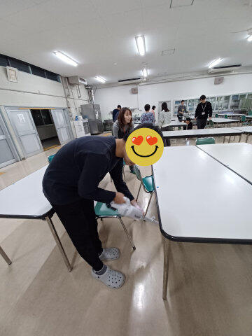 阪大生さんたちと一緒に机を拭いたり、モップ掛けをしたり、掃除機をかけました。