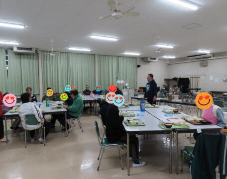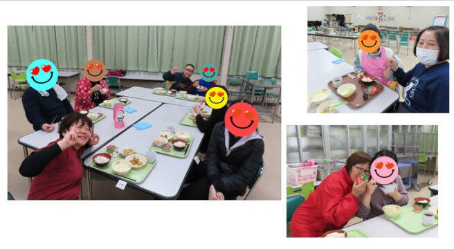デザートの"サンタの3色デザート"は3層になっていて、クリスマスの雰囲気にぴったり。笑顔いっぱいの和やかな食事で、みんなパクパクとあっという間に完食でした。