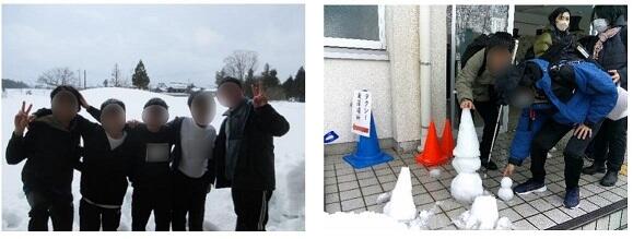 会場の福井盲学校では、お手製の「かまくら」や「雪だるま」が迎えてくれました。運動場には誰の足跡もない、真っ白な世界が広がっており、生徒たちにとって特別な景色となりました。