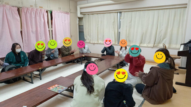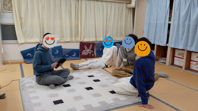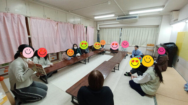 桃太郎の絵本読みをリクエスト!阪大生さんが、リレー形式に読んでくれました。感情込めてもらい、みんな聞き入っていました。
