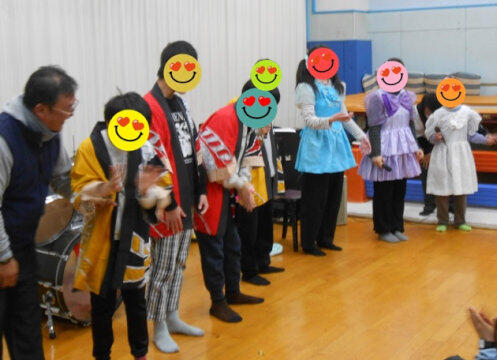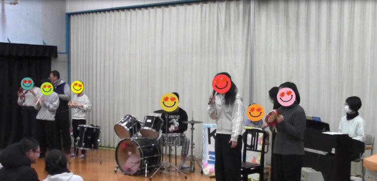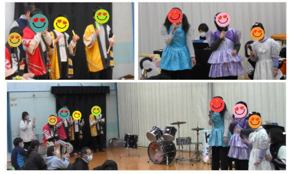 ステージでは、歌・リコーダー・ユーフォニアム・タンバリン・キーボード・ピアノ・ドラムと、さまざまな楽器が次々に登場!