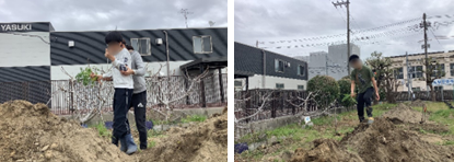 足を使って土の中にスコップを差し込む姿もかっこいいですね!