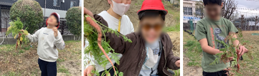 春の日差しが気持ち良いこの日中学部のBC課程の生徒は畑にニンジンの収穫に行きました。