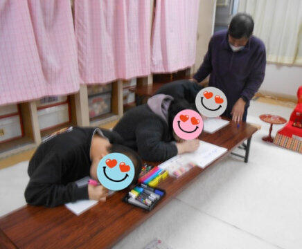 卒業生が退室した後、みんなで3月23日に行われる寄宿舎卒業を祝う会の招待状を作成しました。