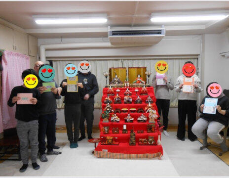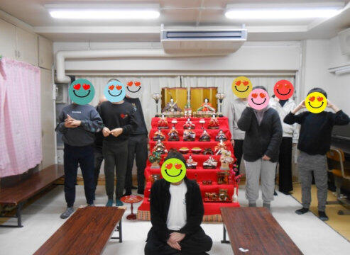 夕食のあとは、13号室に集合して、雛飾りの前で卒業生を囲んでパチリ。 思い出がまたひとつ増えました。