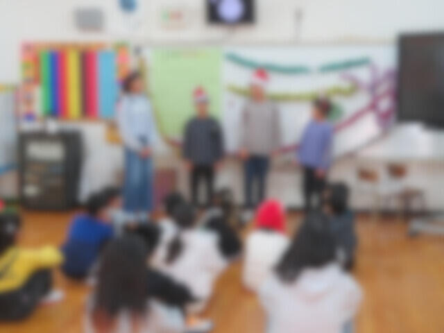 幼稚部のみんなに中学部の生徒たちが素敵なプレゼントを届けてくれました。 手作りのポスターと、たくさんの折り紙作品。 お兄さんお姉さんからのプレゼントに、幼稚部のみんなも喜んでいました。 「校長先生もどうぞ!」と声をかけてもらい、とても強そうなブラックサンタをいただきました。 とても楽しく、心温まる交流の時間でした。